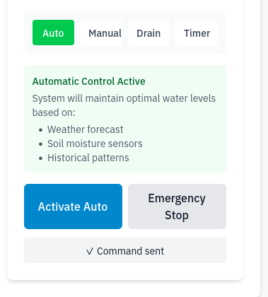 Screenshot of part of the front-end interface, cistern valve control